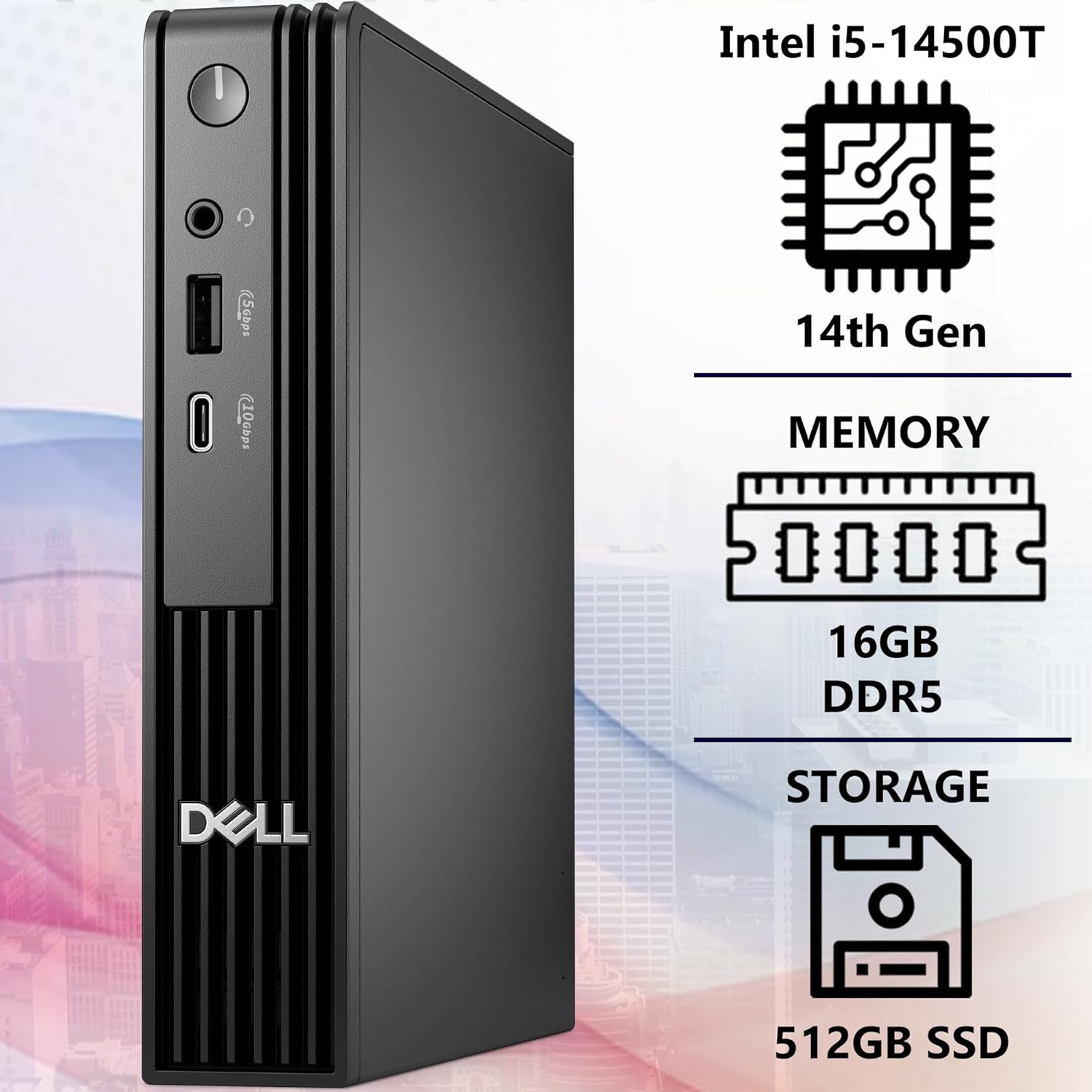 PERFORMANCE: The Dell Pro Micro QCM1250 features the latest 14-core Intel i5-14500T(6 Performance + 8 Efficient cores, 2.5GHz – 4.8GHz, 24MB Cache), combines maximum efficiency and convenience in a mini desktop tower PC.